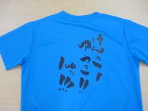 Tシャツの後ろは、書道の上手な先生の手書きのものをそのままデータにし、加工しました。